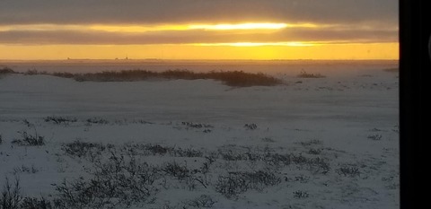I probably took, oh, 100 or so photographs during my most recent trip to Churchill, Manitoba - the "polar bear capital of the world" - last week. Somewhere in the region of 90 were of this sunset, as it played out over the tundra on what seemed like the only period during which the clouds parted and the visibility lifted even a little bit. For much of the rest of the time, we drove around in near-whiteout conditions, driving snow making it all but impossible at times to see more than a matter of feet in any direction. Not that there were many bears to look at anyway: conditions were very cold, more like a typical season in the beforetimes rather than in these extra-warm recent decades, and Hudson Bay froze up swiftly. As soon as it did, most of the bears were gone, out onto the sea ice to begin a fall, winter and spring of seal-eating. Given that they managed an early start, they should come off the ice next year fat and happy - good news for the bears, if not necessarily us would-be bear-watchers.