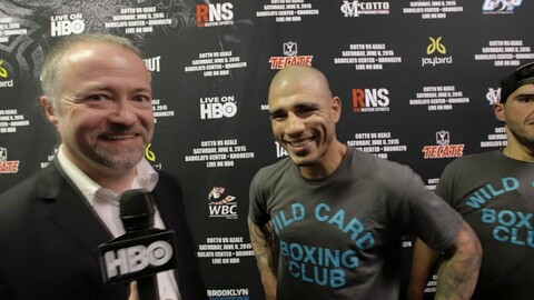 I've long been a fan of Miguel Cotto. He's the first fighter I've followed ringside all the way from prospect/contender status to veteran champion. I enjoy interviewing him, too. Here I am, talking with him and with Daniel Geale, his opponent at Brooklyn's Barclays Center on June 6.